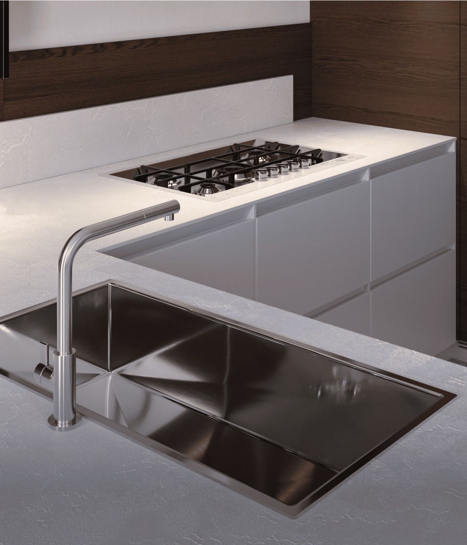 Küchenarbeitsplatten und Tischplatten aus Materialien von Filippi 1971, einschließlich digitaler Laminate und des exklusiven VittEr®, sind darauf ausgelegt, Abnutzung, Hitze und Feuchtigkeit standzuhalten.